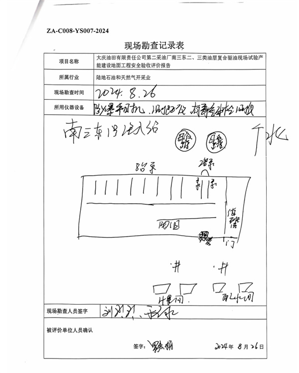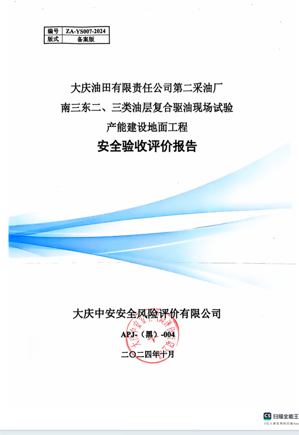 大慶油田有限責(zé)任公司第二采油廠南三東二、三類油層復(fù)合驅(qū)油現(xiàn)場(chǎng)試驗(yàn)產(chǎn)能建設(shè)地面工程安全驗(yàn)收評(píng)價(jià) |