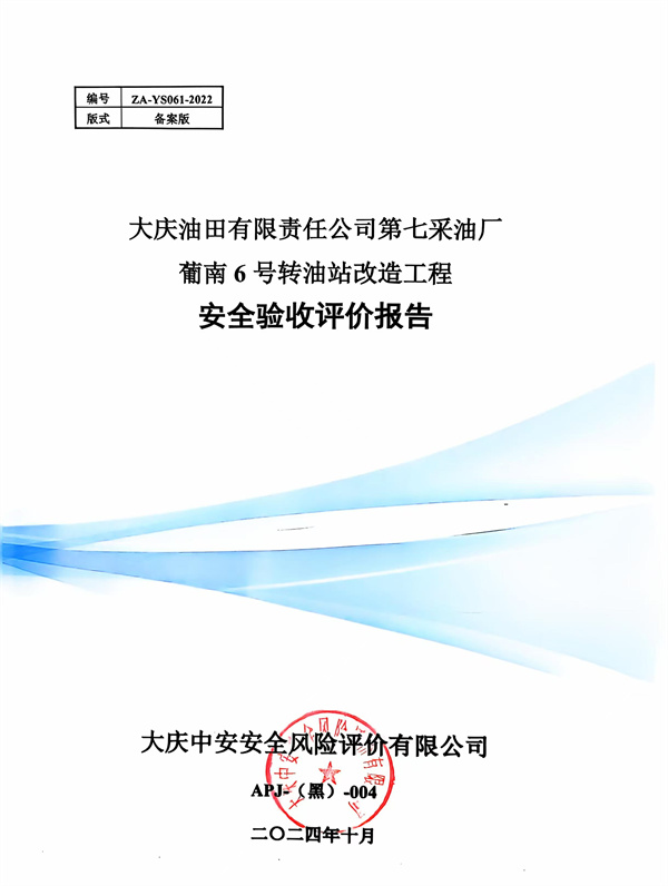 大慶油田有限責任公司第七采油廠葡南6號轉(zhuǎn)油站改造工程安全驗收評價報告