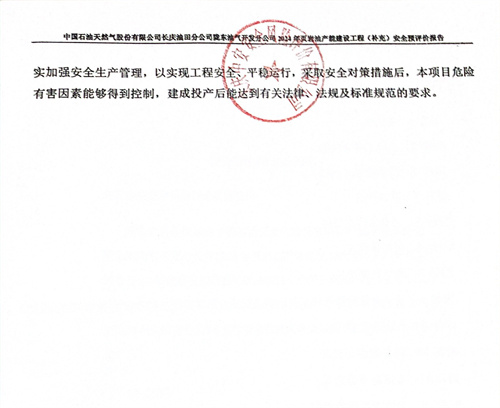 中國(guó)石油天然氣股份有限公司長(zhǎng)慶油田分公司隴東油氣開發(fā)分公司2024年頁(yè)巖油產(chǎn)能建設(shè)工程(補(bǔ)充)建設(shè)方案采取的安全技術(shù)措施和安全設(shè)施符合國(guó)家相關(guān)法律、法規(guī)、標(biāo)準(zhǔn)、規(guī)范的要求。采用的工藝方案和集輸方案安全可行。建設(shè)單位應(yīng)在其今后的設(shè)計(jì)、施工和運(yùn)行中進(jìn)一步落實(shí)本工程方案提出的安全技術(shù)措施和本次預(yù)評(píng)價(jià)提出的補(bǔ)充安全措施,切實(shí)保證工程安全設(shè)施和主體工程的“三同時(shí)”,并在工程竣工投產(chǎn)后切實(shí)加強(qiáng)安全生產(chǎn)管理,以實(shí)現(xiàn)工程安全、平穩(wěn)運(yùn)行,采取安全對(duì)策措施后,本項(xiàng)目危險(xiǎn)有害因素能夠得到控制,建成投產(chǎn)后能達(dá)到有關(guān)法律、法規(guī)及標(biāo)準(zhǔn)規(guī)范的要求。 |