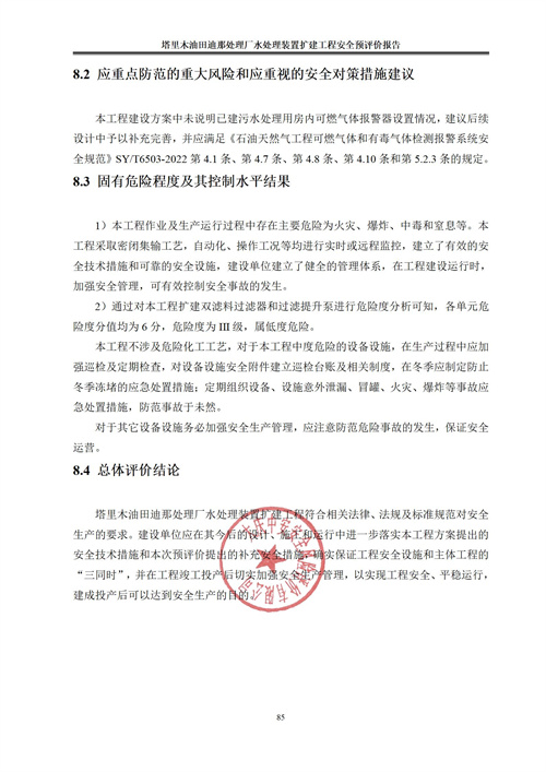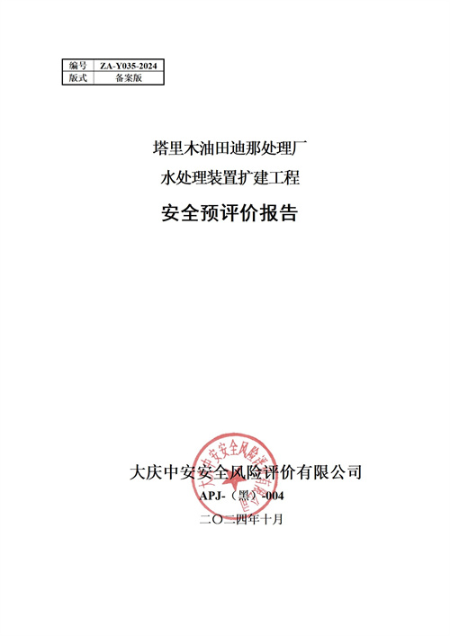 塔里木油田迪那處理廠水處理裝置擴(kuò)建工程安全預(yù)評(píng)價(jià)報(bào)告 |