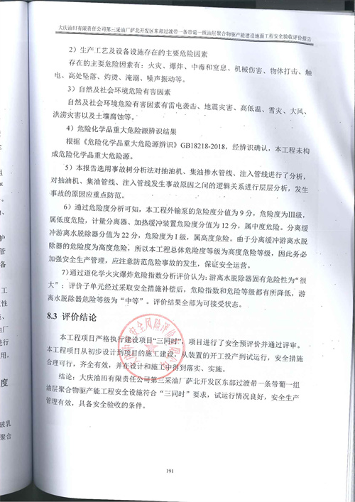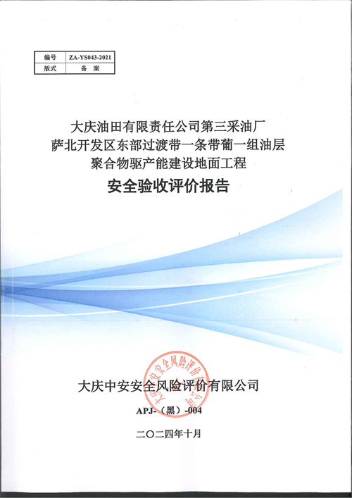大慶油田有限責(zé)任公司第三采油廠薩北開發(fā)區(qū)東部過渡帶一條帶葡一組油層聚合物驅(qū)產(chǎn)能建設(shè)地面工程安全驗(yàn)收評(píng)價(jià)報(bào)告 |