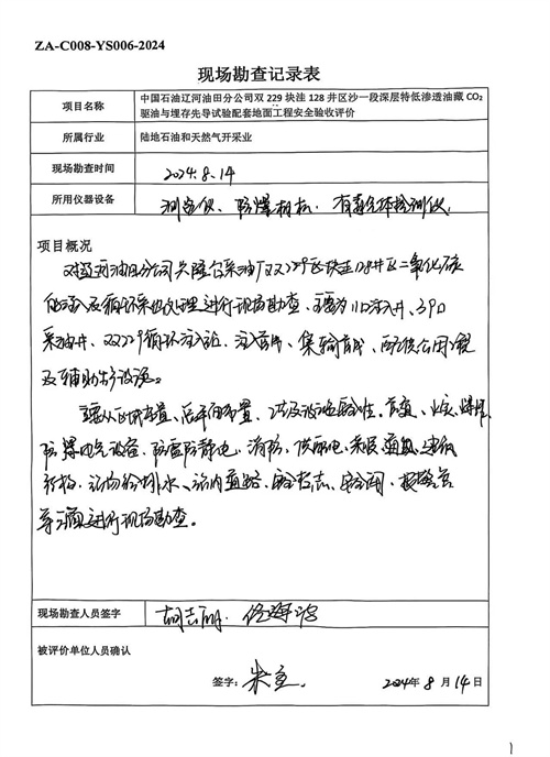 中國石油遼河油田分公司雙229塊洼128井區(qū)沙一段深層特低滲透油藏CO2驅(qū)油與埋存先導(dǎo)試驗(yàn)配套地面工程(興采部分)安全驗(yàn)收評價(jià)報(bào)告