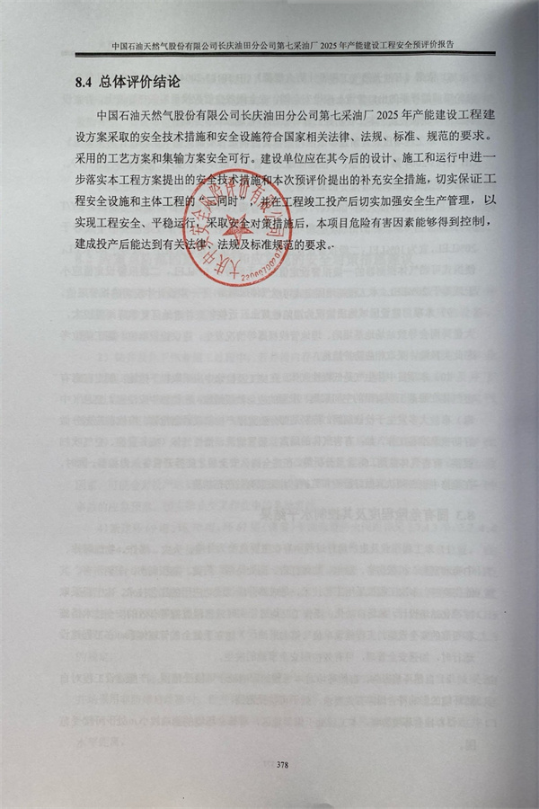 中國石油天然氣股份有限公司長慶油田分公司第七采油廠2025年產(chǎn)能建設(shè)工程安全預(yù)評價(jià)報(bào)告 |