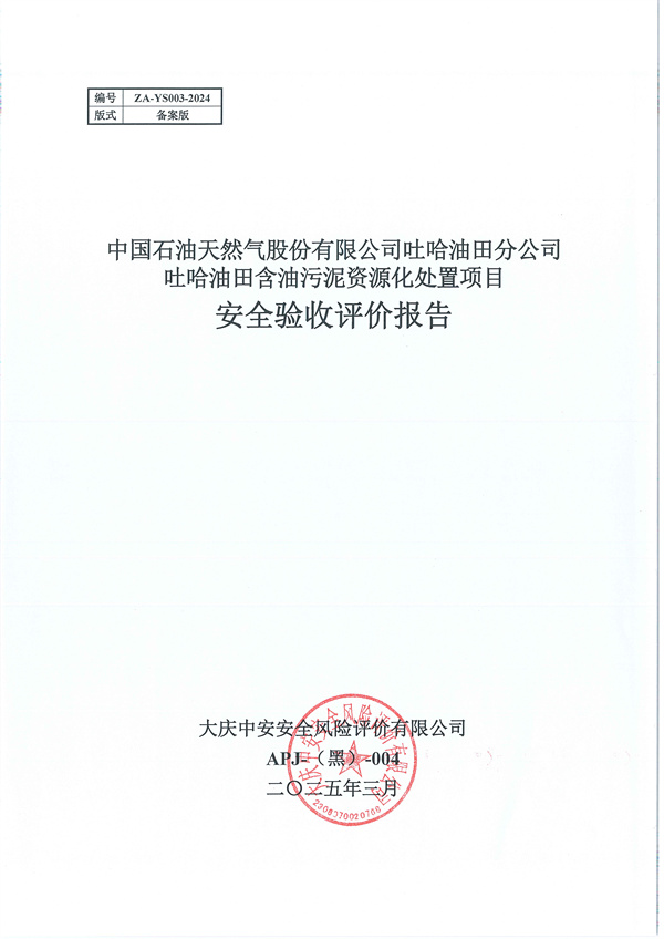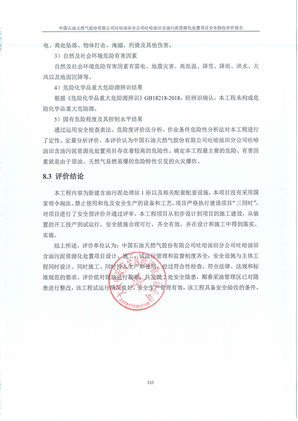 中國(guó)石油天然氣股份有限公司吐哈油田分公司吐哈油田含油污泥資源化處置項(xiàng)目安全驗(yàn)收評(píng)價(jià)報(bào)告 |