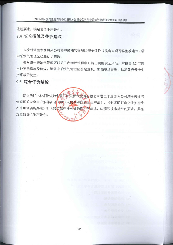 中國石油天然氣股份有限公司塔里木油田分公司塔中采油氣管理區(qū)安全現(xiàn)狀評價(jià)報(bào)告 |