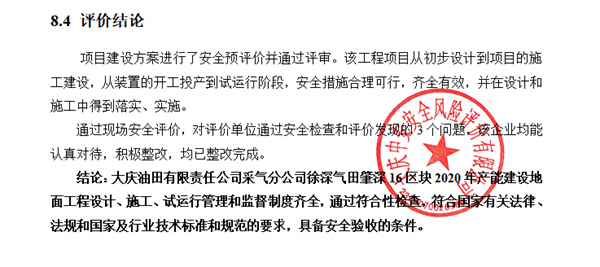 大慶油田有限責任公司采氣分公司徐深氣田肇深16區(qū)塊2020年產(chǎn)能建設(shè)地面工程設(shè)計、施工、試運行管理和監(jiān)督制度齊全,通過符合性檢查,符合國家有關(guān)法律、法規(guī)和國家及行業(yè)技術(shù)標準和規(guī)范的要求,具備安全驗收的條件。 |