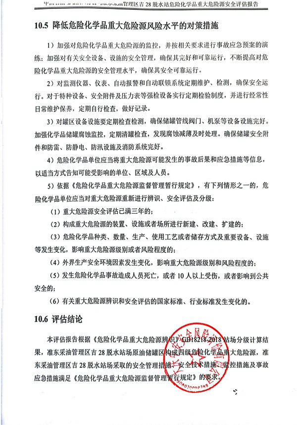 中國石油天然氣股份有限公司吐哈油田分公司準(zhǔn)東采油管理區(qū)吉28脫水站危險(xiǎn)化學(xué)品重大危險(xiǎn)源安全評(píng)估報(bào)告 |