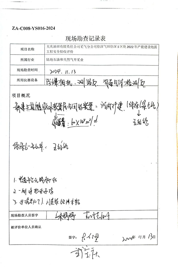 大慶油田有限責(zé)任公司采氣分公司徐深氣田徐深1區(qū)塊2022年產(chǎn)能建設(shè)地面工程安全設(shè)施符合“三同時”要求,試運行情況良好,安全生產(chǎn)管理有效,具備安全驗收的條件。 |