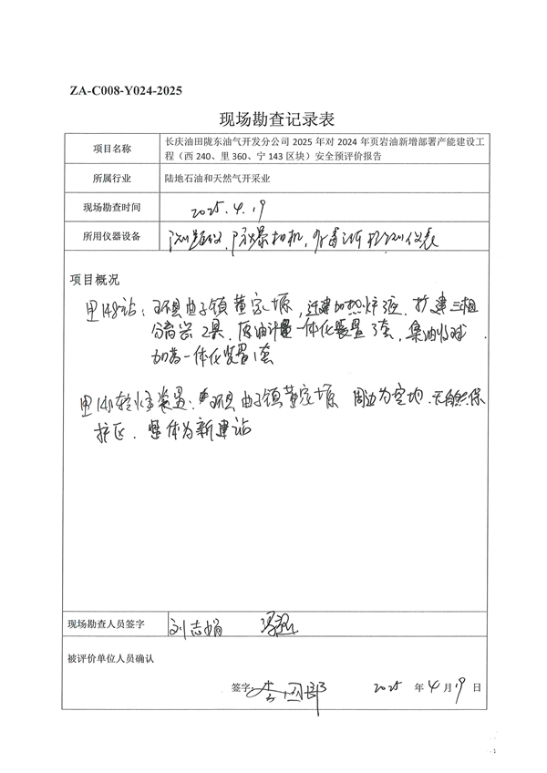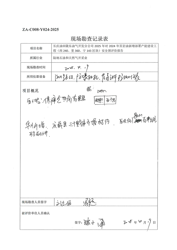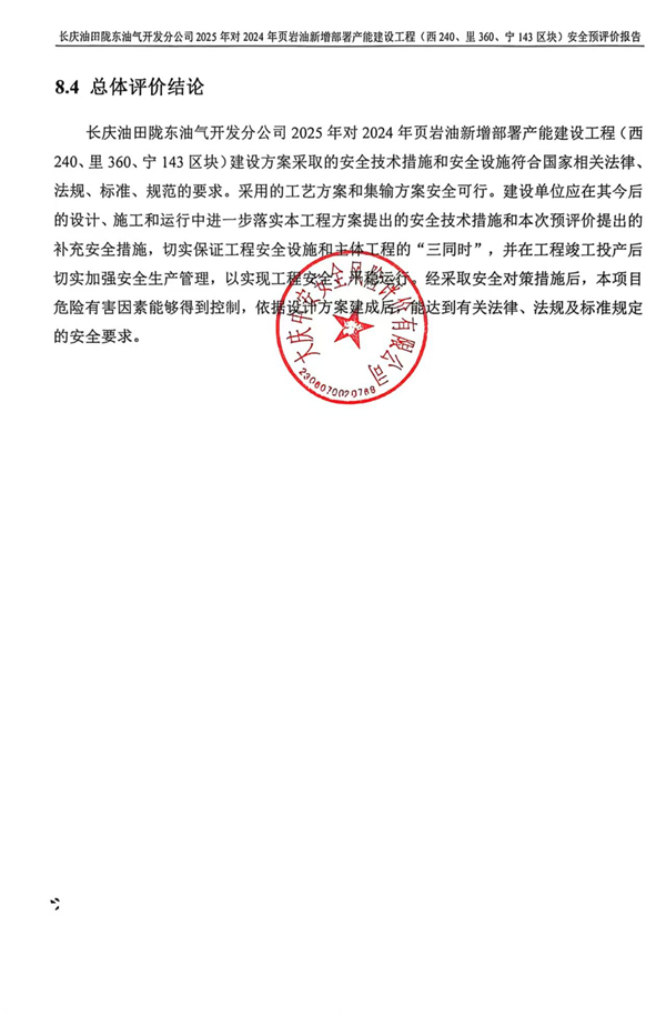 長慶油田隴東油氣開發(fā)分公司2025年對2024年頁巖油新增部署產(chǎn)能建設(shè)工程(西240、里360、寧143區(qū)塊)安全預(yù)評價報告