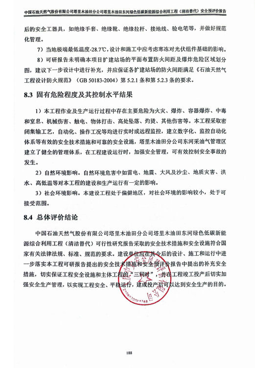 中國石油天然氣股份有限公司塔里木油田分公司塔里木油田東河綠色低碳新能源綜合利用工程(清潔替代)安全預(yù)評價報告 |
