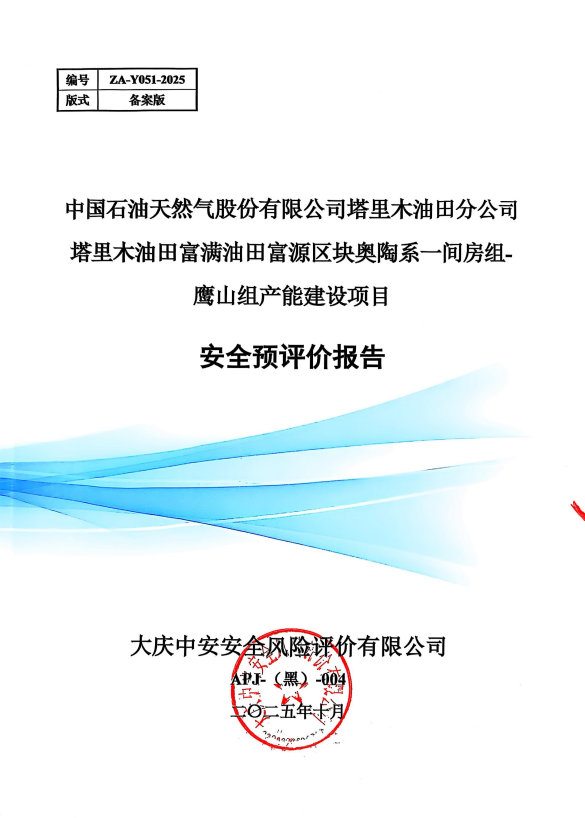 中國(guó)石油天然氣股份有限公司塔里木油田分公司塔里木油田富滿油田富源區(qū)塊奧陶系一間房組-鷹山組產(chǎn)能建設(shè)項(xiàng)目安全預(yù)評(píng)價(jià)報(bào)告 |
