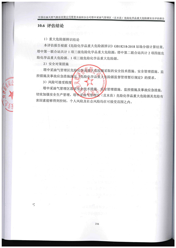 中國石油天然氣股份有限公司塔里木油田分公司塔中采油氣管理區(qū)危險化學品重大危險源評估報告 |