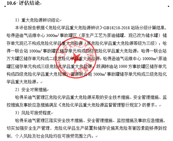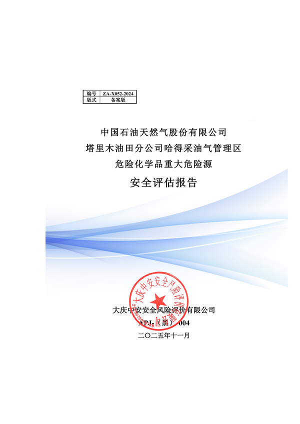 中國石油天然氣股份有限公司塔里木油田分公司哈得采油氣管理區(qū)危險化學品重大危險源安全評估報告 |