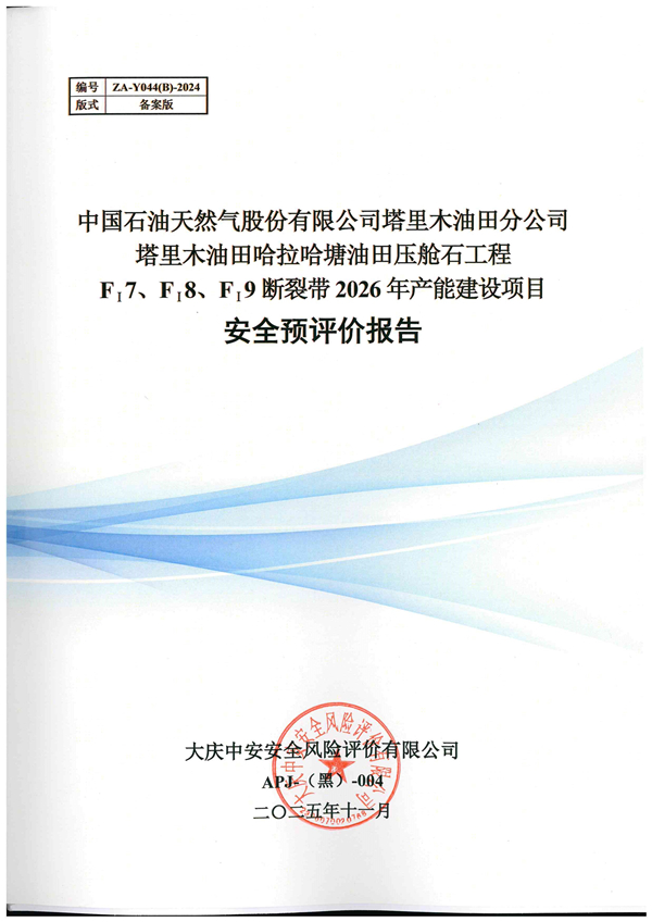 中國石油天然氣股份有限公司塔里木油田分公司塔里木油田哈拉哈塘油田壓艙石工程FⅠ7、FⅠ8、FⅠ9斷裂帶2026年產(chǎn)能建設(shè)項(xiàng)目安全預(yù)評(píng)價(jià)報(bào)告