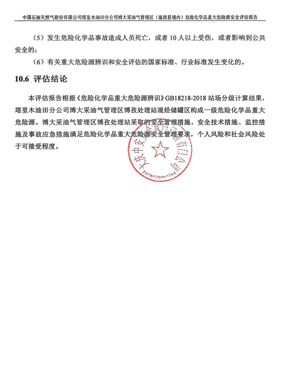 中國石油天然氣股份有限公司塔里木油田分公司博大采油氣管理區(qū)危險化學品重大危險源評估報告 |