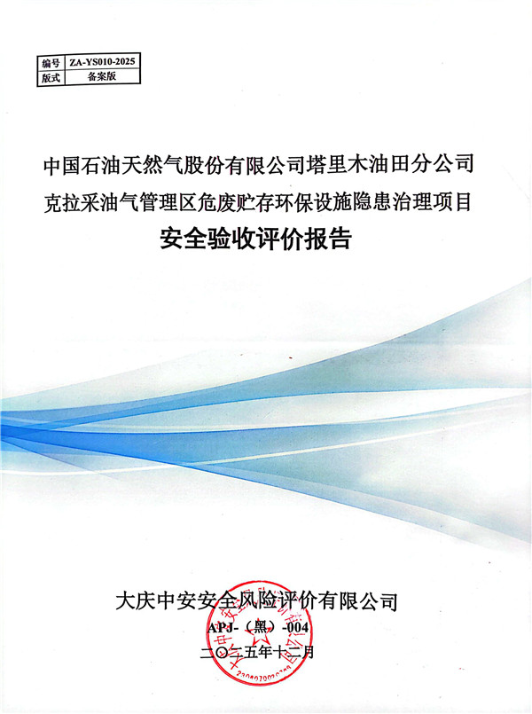 中國石油天然氣股份有限公司塔里木油田分公司克拉采油氣管理區(qū)危廢貯存環(huán)保設(shè)施隱患治理項目安全驗收評價報告 |