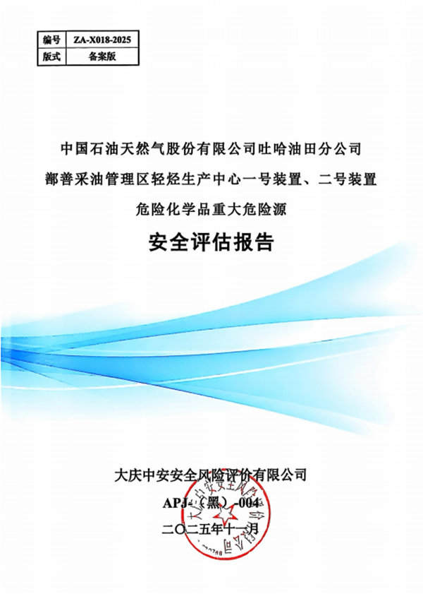 中國石油天然氣股份有限公司吐哈油田分公司鄯善采油管理區(qū)輕烴生產(chǎn)中心一號(hào)裝置、二號(hào)裝置危險(xiǎn)化學(xué)品重大危險(xiǎn)源安全評(píng)估報(bào)告