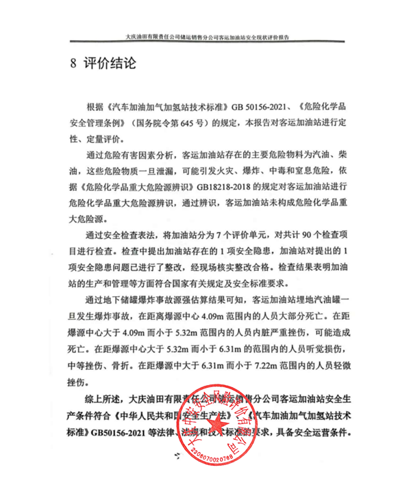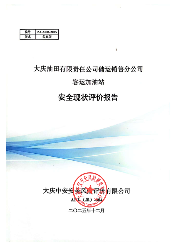大慶油田有限責任公司儲運銷售分公司客運加油站安全現(xiàn)狀評價報告