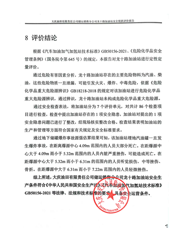大慶油田有限責(zé)任公司儲(chǔ)運(yùn)銷售分公司龍十路加油站安全現(xiàn)狀評(píng)價(jià)報(bào)告 |