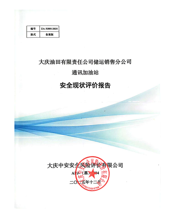 大慶油田有限責(zé)任公司儲運(yùn)銷售分公司通訊加油站安全現(xiàn)狀評價報告
