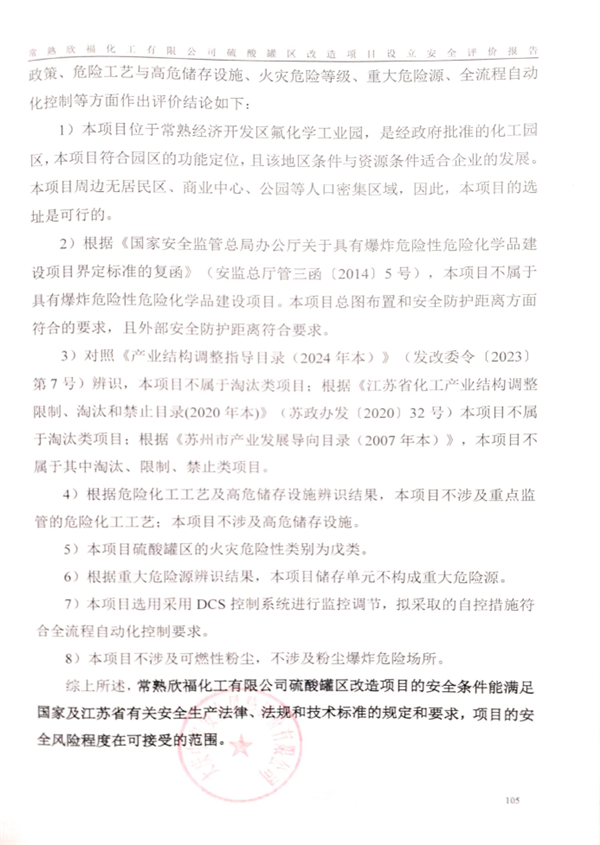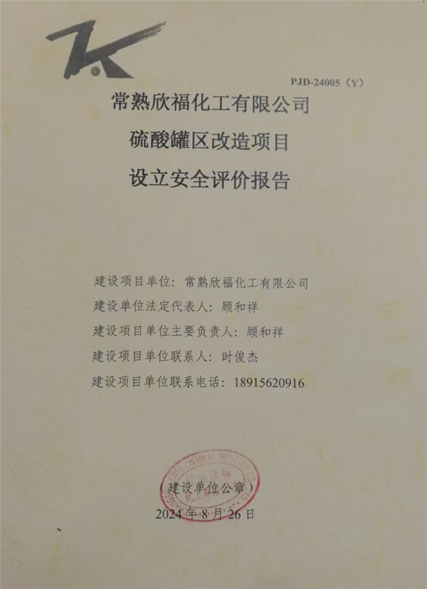 常熟欣福化工有限公司硫酸罐區(qū)改造項(xiàng)目設(shè)立安全評(píng)價(jià)報(bào)告