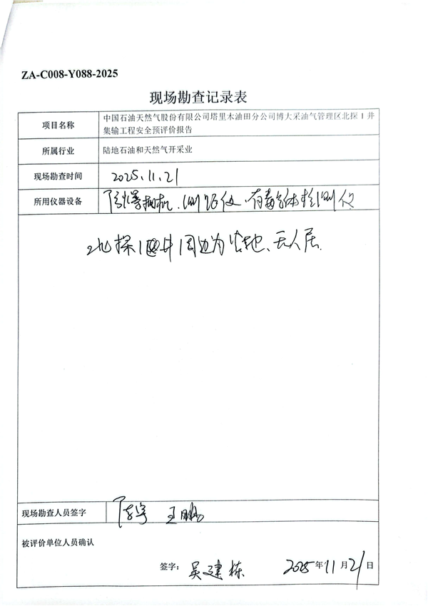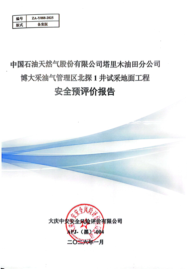 中國石油天然氣股份有限公司塔里木油田分公司博大采油氣管理區(qū)北探1井試采地面工程安全預(yù)評價報告