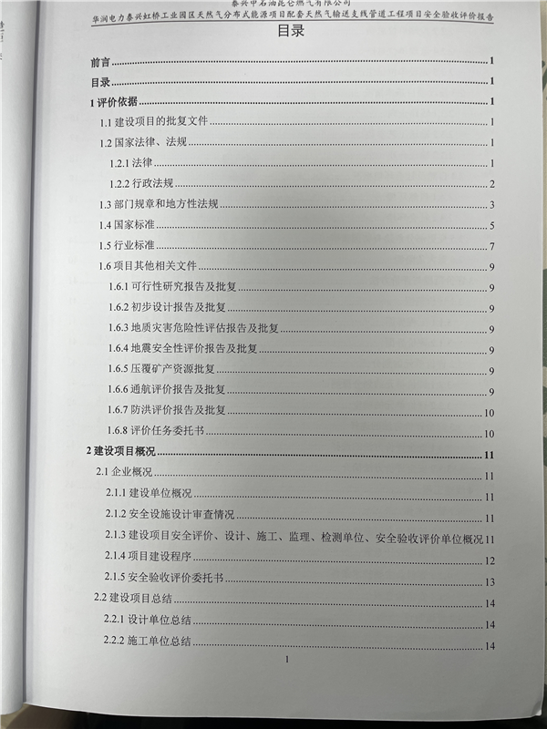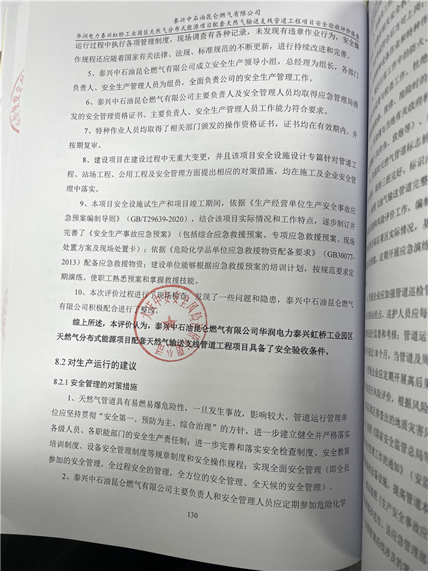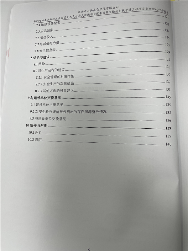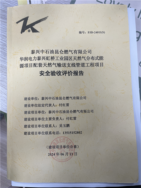 泰興中石油昆侖燃?xì)庥邢薰救A潤電力泰興虹橋工業(yè)園區(qū)天然氣分布式能源項(xiàng)目配套天然氣輸送支線管道工程項(xiàng)目安全驗(yàn)收評(píng)價(jià) |