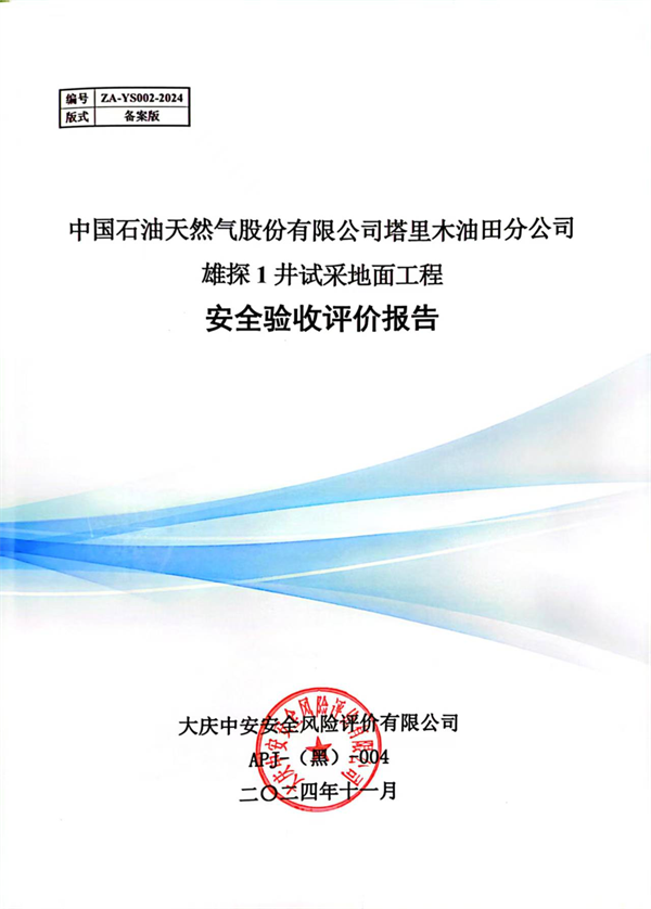 中國石油天然氣股份有限公司塔里木油田分公司雄探1井試采地面工程安全驗收評價報告