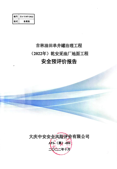 吉林油田單井罐治理工程(2022年)乾安采油廠地面工程安全評(píng)價(jià)報(bào)告