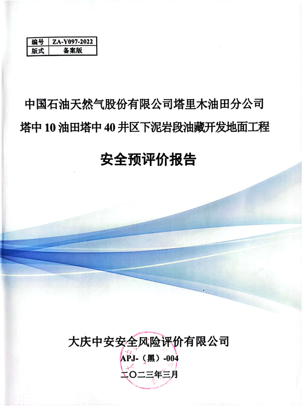 中國(guó)石油天然氣股份有限公司塔里木油田分公司塔中10油田塔中40井區(qū)下泥巖段油藏開發(fā)地面工程安全預(yù)評(píng)價(jià)報(bào)告