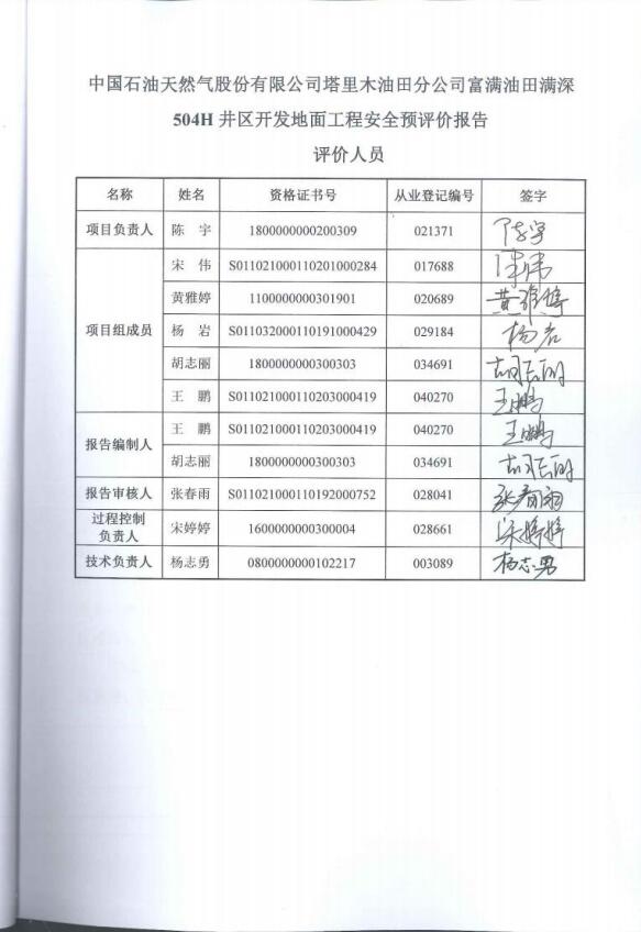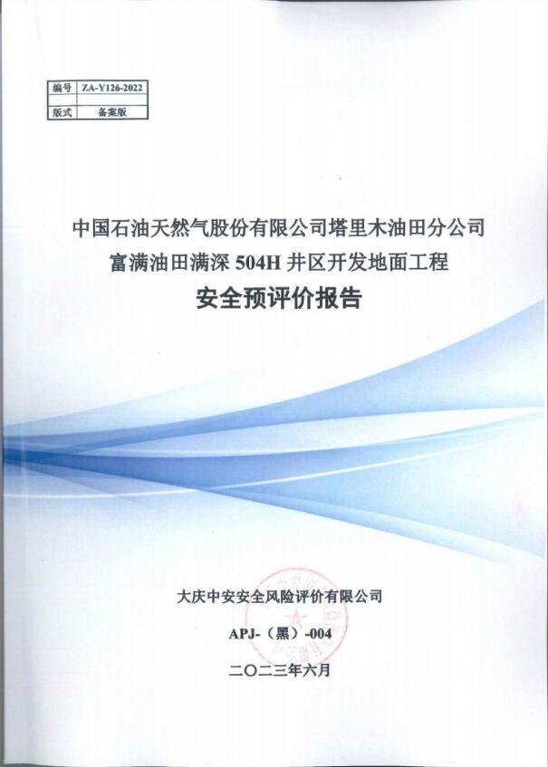 中國石油天然氣股份有限公司塔里木油田分公司富滿油田滿深504H井區(qū)開發(fā)地面工程 安全評價報告