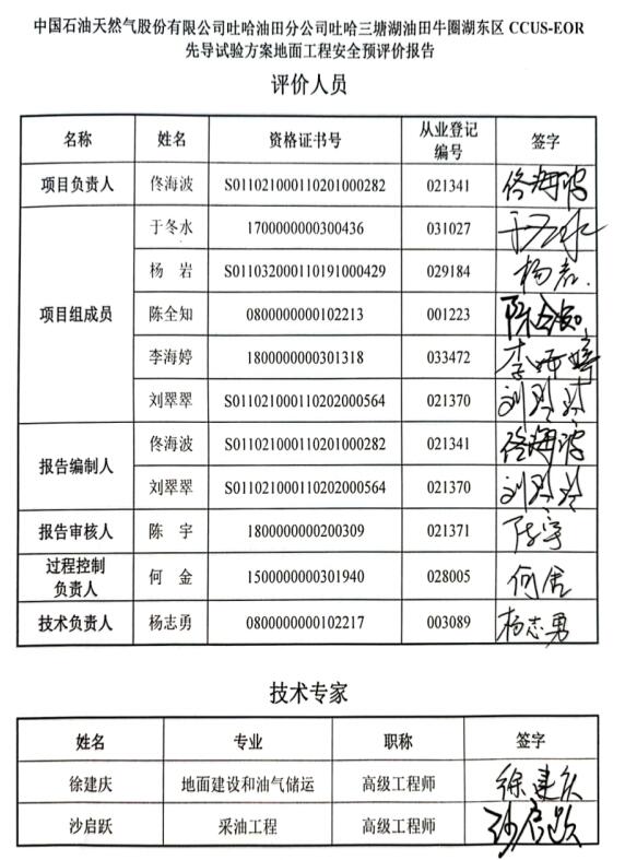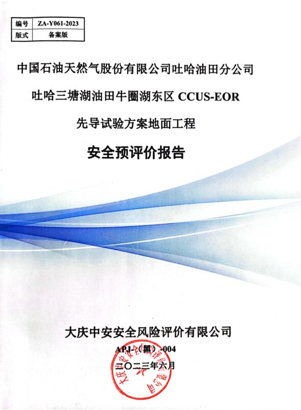 中國石油天然氣股份有限公司吐哈油田分公司吐哈三塘湖油田牛圈湖東區(qū)CCUS-EOR先導(dǎo)試驗(yàn)方案地面工程安全預(yù)評(píng)價(jià)報(bào)告