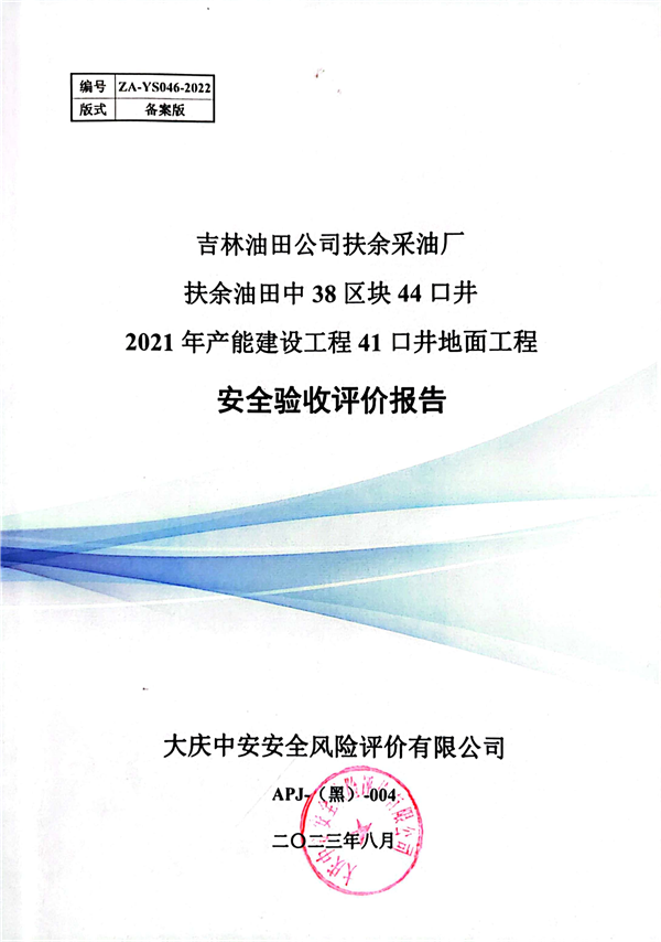 吉林油田公司扶余采油廠扶余油田中38區(qū)塊44口井2021年產(chǎn)能建設(shè)工程41口井地面工程 安全評(píng)價(jià)報(bào)告