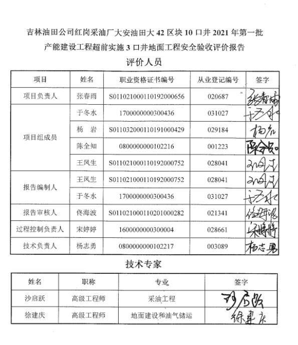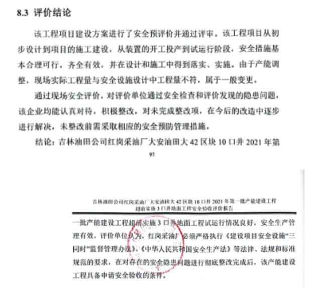 吉林油田公司紅崗采油廠大安油田大42區(qū)塊10口井2021年第一批產(chǎn)能建設(shè)工程超前實(shí)施3口井地面工程試運(yùn)行情況良好,安全生產(chǎn)管理有效,評(píng)價(jià)單位認(rèn)為,紅崗采油廠必須嚴(yán)格執(zhí)行《建設(shè)項(xiàng)目安全設(shè)施“三同時(shí)”監(jiān)督管理辦法》、《中華人民共和國(guó)安全生產(chǎn)法》等法律、法規(guī)和標(biāo)準(zhǔn)規(guī)范的要求,在對(duì)存在的安全隱患問(wèn)題進(jìn)行徹底整改完成后,該產(chǎn)能建設(shè)工程具備申請(qǐng)安全驗(yàn)收的條件。 |