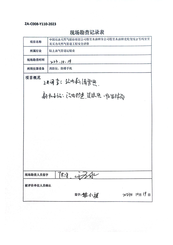 塔里木油田克輪復(fù)線2號(hào)閥室至英買(mǎi)力天然氣管道工程安全預(yù)評(píng)價(jià)報(bào)告 |