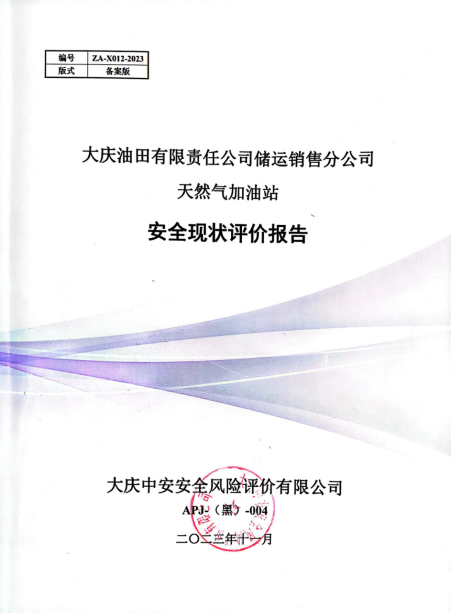 大慶油田有限責(zé)任公司儲(chǔ)運(yùn)銷售分公司天然氣加油站安全現(xiàn)狀評(píng)價(jià)報(bào)告 |