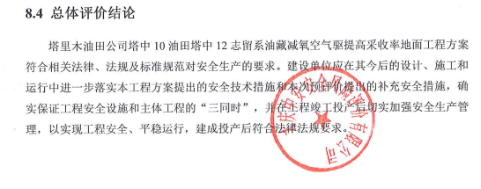 塔里木油田公司塔中10油田塔中12志留系油藏減氧空氣驅(qū)提高采收率地面工程方案符合相關(guān)法律、法規(guī)及標(biāo)準(zhǔn)規(guī)范對安全生產(chǎn)的要求。建設(shè)單位應(yīng)在其今后的設(shè)計、施工和運行中進(jìn)一步落實本工程方案提出的安全技術(shù)措施和本次預(yù)評價提出的補充安全措施,確實保證工程安全設(shè)施和主體工程的“三同時”,并在工程竣工投產(chǎn)后切實加強安全生產(chǎn)管理,以實現(xiàn)工程安全、平穩(wěn)運行,建成投產(chǎn)后符合法律法規(guī)要求。 |