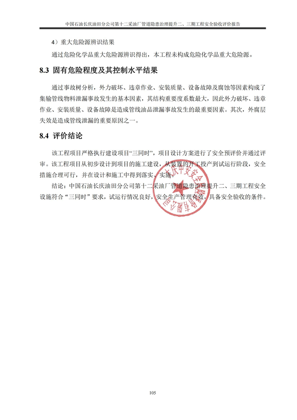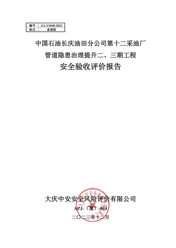 中國石油長慶油田分公司第十二采油廠管道隱患治理提升二、三期工程安全驗收評價報告 |