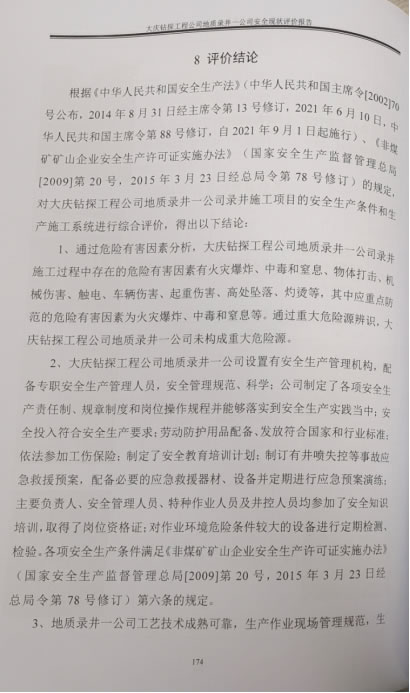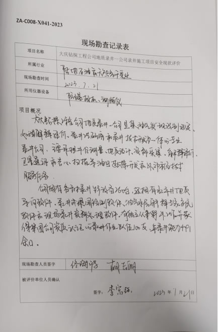 大慶鉆探工程公司地質錄井一公司錄井施工項目安全現(xiàn)狀評價報告信息公示表