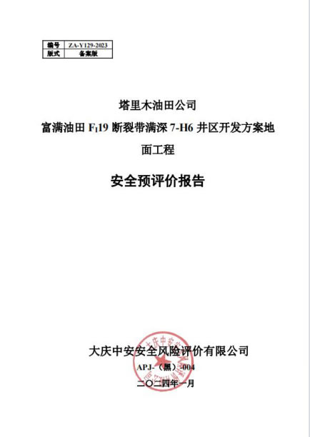 塔里木油田公司富滿油田FI19斷裂帶滿深7-H6井區(qū)開發(fā)方案地面工程安全預(yù)評價(jià)
