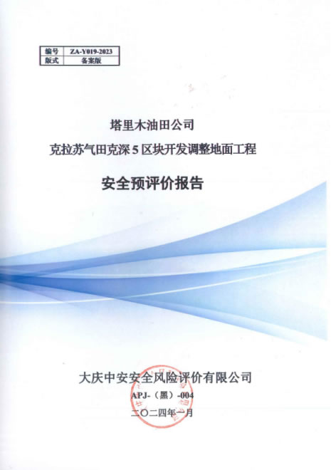 塔里木油田公司克拉蘇氣田克深5區(qū)塊開(kāi)發(fā)調(diào)整地面工程安全預(yù)評(píng)價(jià)報(bào)告