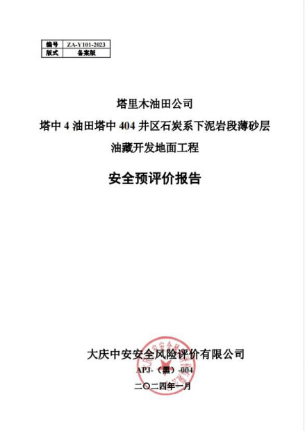 塔里木油田公司塔中4油田塔中404井區(qū)石炭系下泥巖段薄砂層油藏開發(fā)地面工程安全預(yù)評(píng)價(jià)