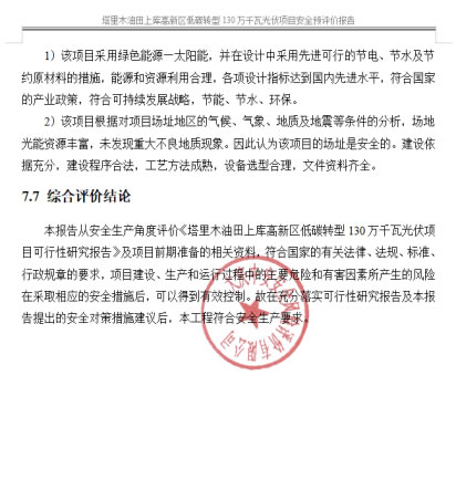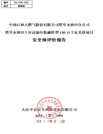 中國石油天然氣股份有限公司塔里木油田分公司塔里木油田上庫高新區(qū)低碳轉(zhuǎn)型130萬千瓦光伏項(xiàng)目安全預(yù)評價報告 |