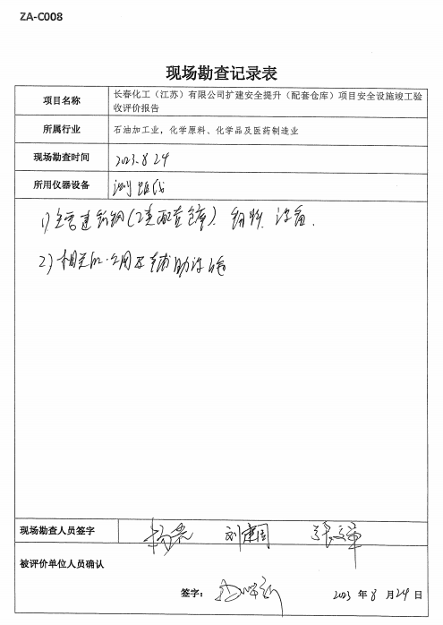 長春化工(江蘇)有限公司擴(kuò)建安全提升(配套倉庫)項(xiàng)目安全設(shè)施符合設(shè)計(jì)要求,具備安全設(shè)施竣工驗(yàn)收條件。 |