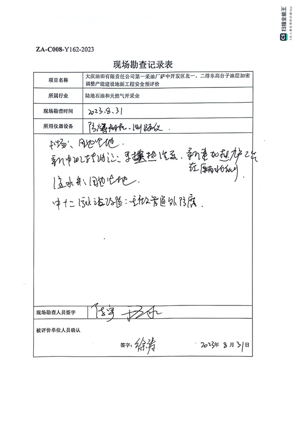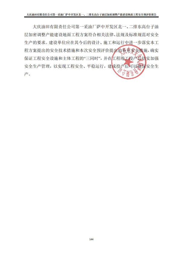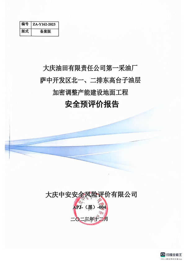 大慶油田有限責(zé)任公司第一采油廠薩中開發(fā)區(qū)北一、二排東高臺子油層加密調(diào)整產(chǎn)能建設(shè)地面工程安全預(yù)評價