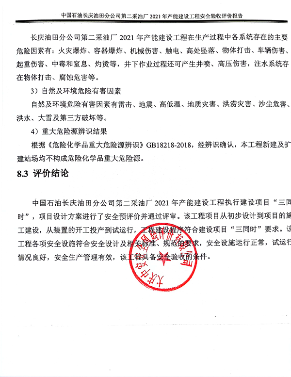 中國(guó)石油長(zhǎng)慶油田分公司第二采油廠2021年產(chǎn)能建設(shè)工程安全驗(yàn)收評(píng)價(jià)報(bào)告
