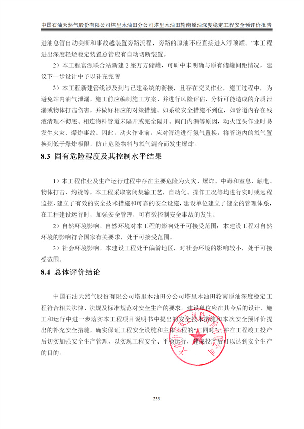 中國石油天然氣股份有限公司塔里木油田分公司塔里木油田輪南原油深度穩(wěn)定工程安全預(yù)評價 |