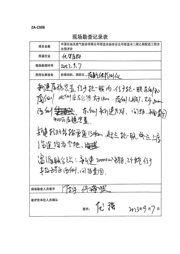 對擴建站場新建設(shè)備與已建設(shè)備的防火間距進行檢查,對新建管道沿途周邊環(huán)境進行檢查評價。 |