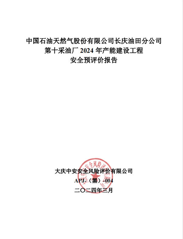 中國石油天然氣股份有限公司長慶油田分公司第十采油廠2024年產(chǎn)能建設(shè)工程安全預(yù)評價報告 |