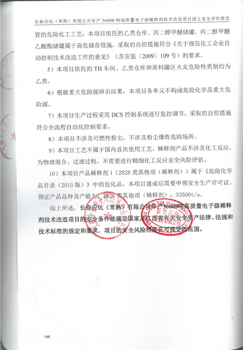 長春應(yīng)化(常熟)有限公司年產(chǎn)36000噸高質(zhì)量電子級稀釋劑技術(shù)改造項目設(shè)立安全評價報告